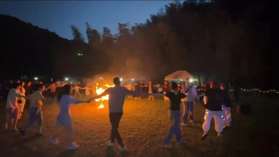 夜幕降臨,活動在歡快的舞蹈中拉開序幕,音樂、燒烤、篝火、舞蹈將現場的氣氛推向高潮,伴著歌聲,觀眾席歡呼雀躍,現場成為一片歡樂的海洋。